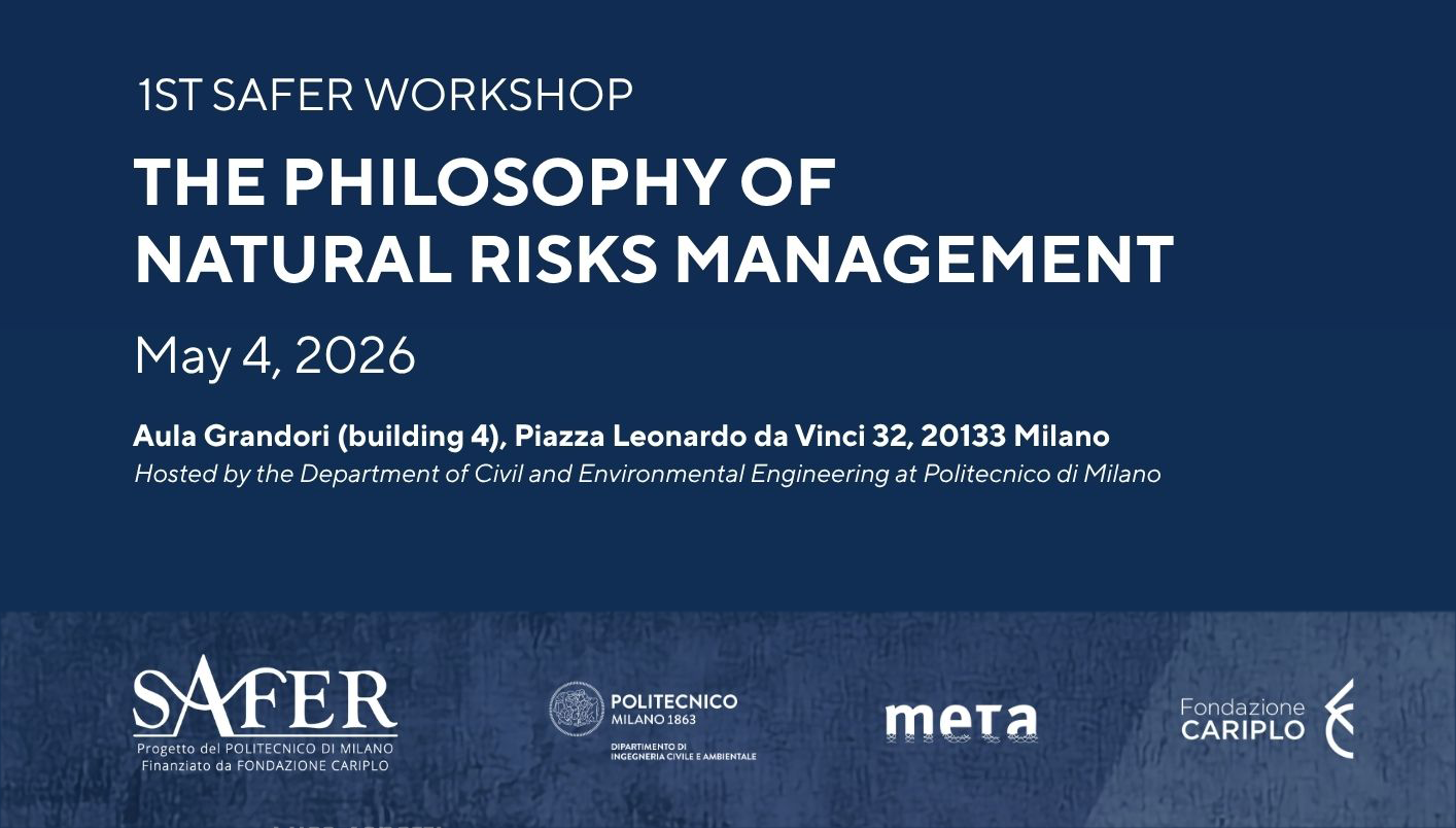 On May 4, 2026 the 1st SAFER Workshop – The Philosophy of Natural Risks Management will take place in Grandori Room (building 4), from 9:30 to 17:30.