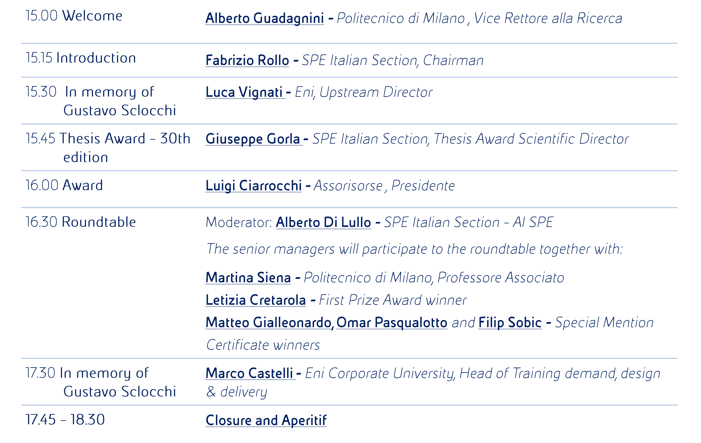 Per 30 anni questo premio ha rappresentato un’opportunità unica per osservare da vicino l’evoluzione dell’industria energetica. Durante questo evento, i vincitori del premio avranno l’opportunità di condividere le loro prospettive sul futuro delle competenze e dello sviluppo professionale insieme ai dirigenti senior provenienti dall’industria, dall’università e dalle associazioni.