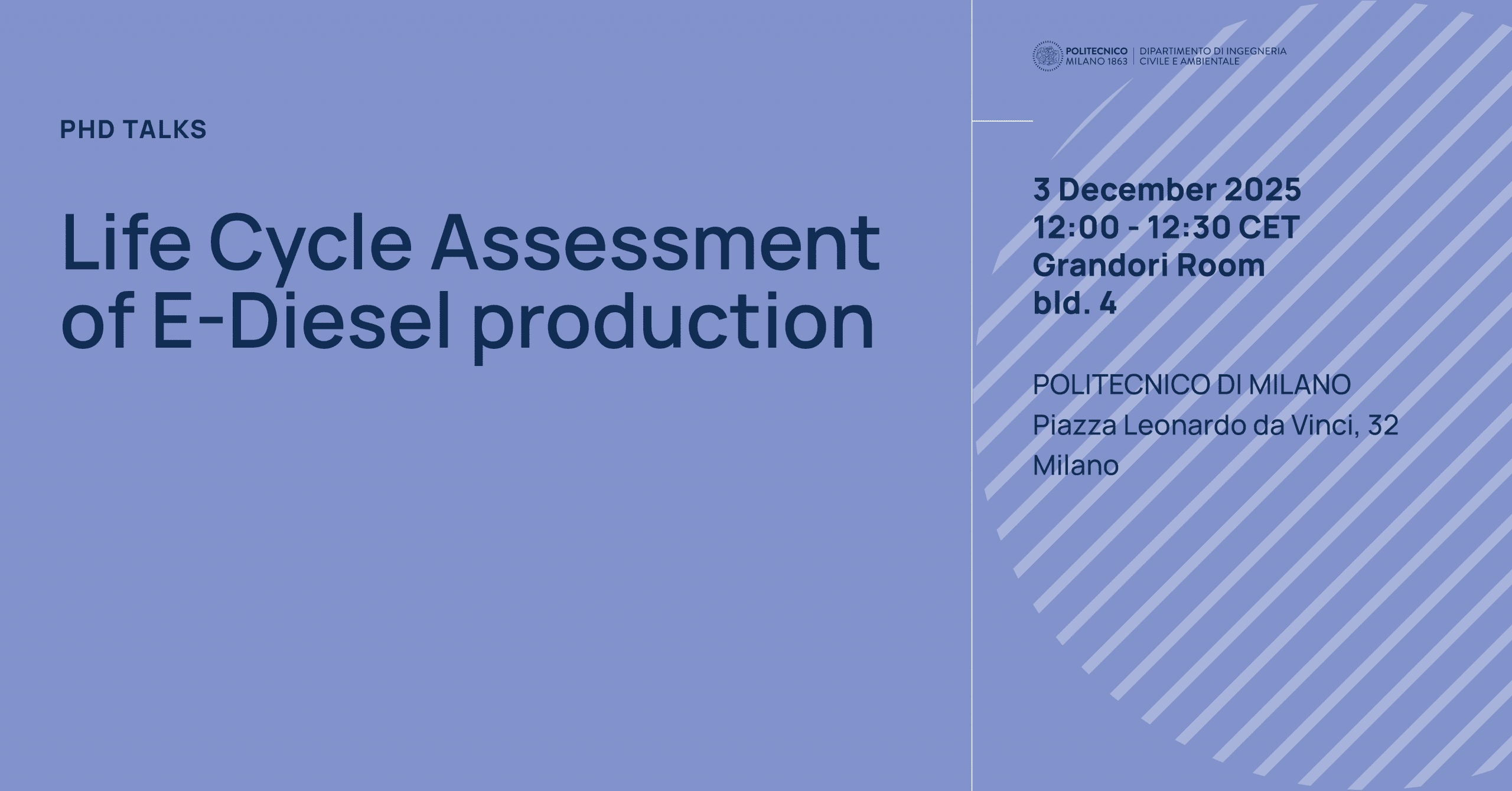 - Tag Evento:DICA, Life Cycle Assessment of E-Diesel production, Paula Martina Barbato, PoliMi