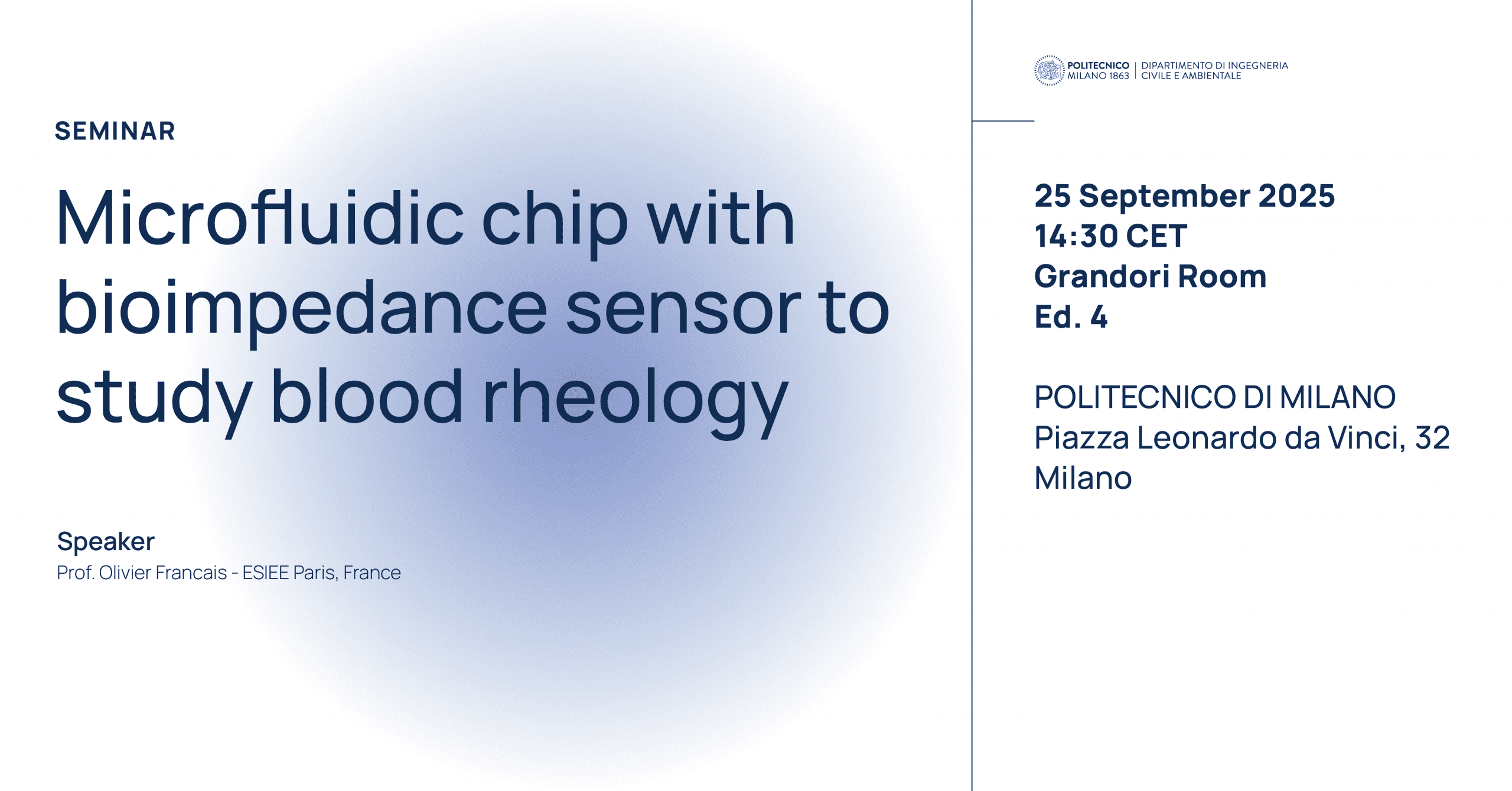 Giovedì 25 settembre si terrà un seminario presso l’aula Grandori (Edificio 4 – piano seminterrato) alle ore 14:30 dal titolo “Microfluidic chip with bioimpedance sensor to study blood rheology”.