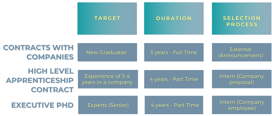 Politecnico di Milano offers three types of Industrial PhD. They are typically selected to closely match employee profile which would fit best the Company needs.