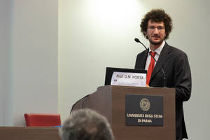 Giovanni Porta ha presentato la sua visione su processi di trasporto reattivo in mezzi porosi. I mezzi porosi sono tutto intorno a noi e hanno applicazioni in campi diversi delle scienze e dell’ingegneria, dagli acquiferi, alle piante, alla biofluidodinamica, fino ai sistemi di stoccaggio dell’energia. Lo studio del trasporto di sostanze reattive richiede un approccio multidisciplinare in grado di intrecciare diverse discipline quali fisica, biologia, chimica, e ingegneria. Il prof. Porta ha evidenziato le sfide aperte per la ricerca in questo ambito, mostrando i suoi recenti studi sulla contaminazione di suoli ed acqua sotterranea in ambito agricolo, una delle sfide più rilevanti per la sostenibilità della produzione di cibo.